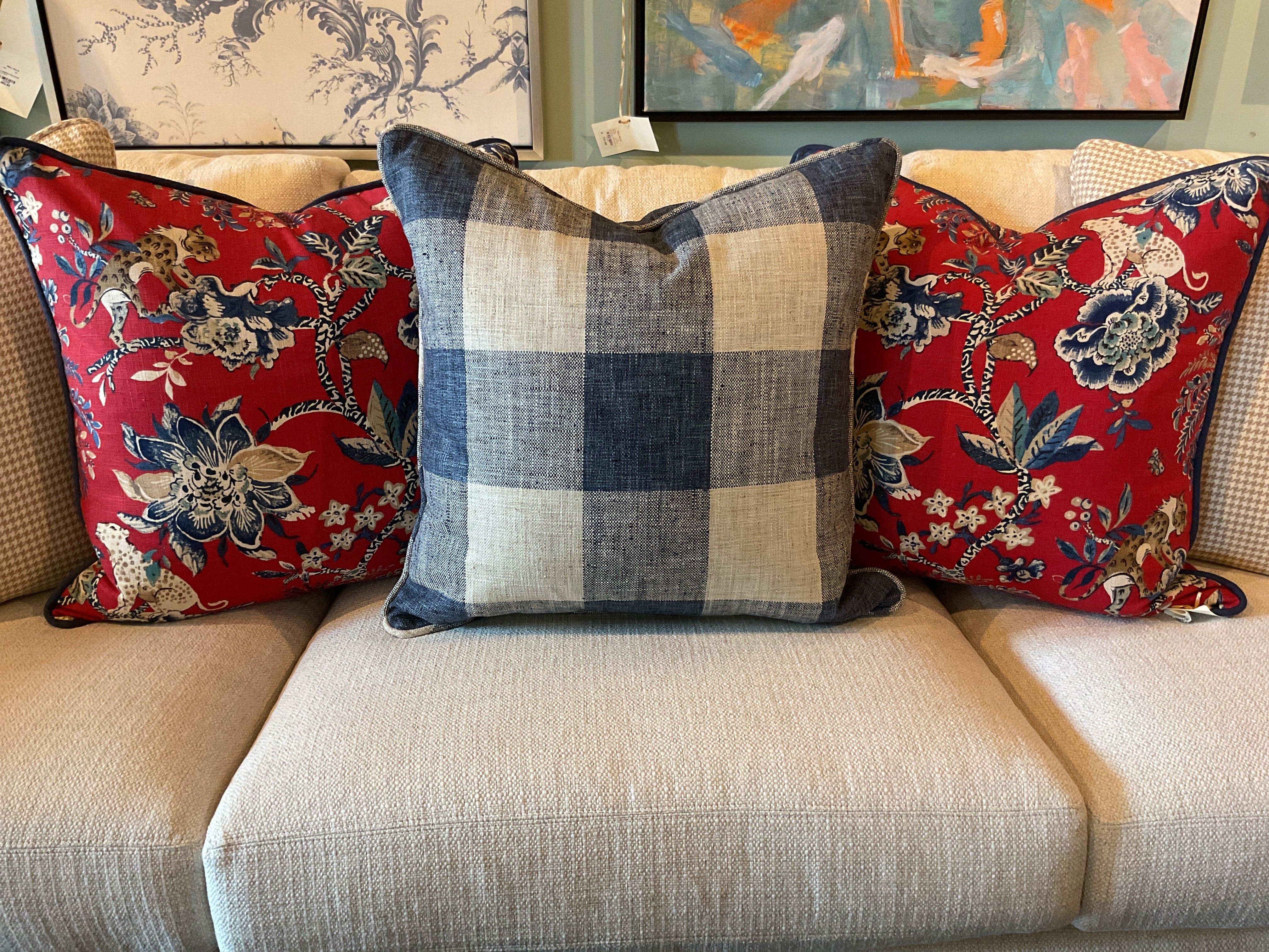 This pillow sham is handmade in our workroom with careful attention to detail. To avoid shrinkage or damage, we recommend dry cleaning only. Proper care will help preserve its shape, fabric, and craftsmanship.
